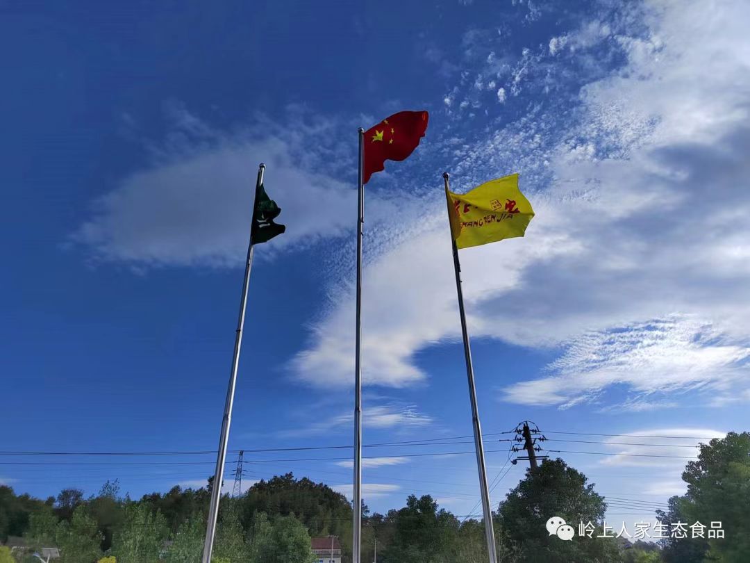 2022年9月29日上午八點(diǎn),鮮艷的五星紅旗在嶺上人家的廠區(qū)內(nèi)冉冉升起,在場的全體員工昂首肅立,向國旗莊嚴(yán)行注目禮,