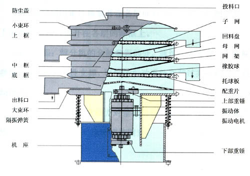 XZS系列旋振篩是在S49系列旋振篩的基礎(chǔ)上,吸收國(guó)內(nèi)外先進(jìn)技術(shù),并采用先進(jìn)的加工工藝而設(shè)計(jì)的高精度篩分過(guò)濾機(jī)械,它是以立式振動(dòng)電機(jī)或?qū)S眉ふ衿鳛檎駝?dòng)源,立式振動(dòng)電機(jī)(或激振器)上、下端裝有偏心重錘,可產(chǎn)生水平、垂直、傾斜的三次元運(yùn)動(dòng),通過(guò)調(diào)節(jié)上、下偏心重錘的相位角,改變物料在篩面上的運(yùn)動(dòng)軌跡以達(dá)到篩分各種物料的目的。該產(chǎn)品適用于任何粉、粒、液的篩分和過(guò)濾的行業(yè)。廣泛用于化工、醫(yī)藥粉、液、涂料、顏料、化妝品、油脂、樹(shù)脂、陶瓷漿、粘土泥漿、生石灰、耐火材料粉末,冶金粉末、電磁粉末、研磨粉、果汁、飲料、食糖、食鹽、味精、調(diào)料、奶粉、淀粉、面粉、米粉、碳粉、石墨粉、錳粉、碳酸鋰、助溶劑、滅火劑以及環(huán)保行業(yè)的污水、廢水處理的工藝過(guò)程中的篩分、過(guò)濾。