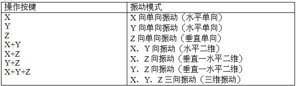 5、三維振動臺操作,依次按“X方向”、“Y方向”、“Z方向”開關(guān),振動臺開始振動。