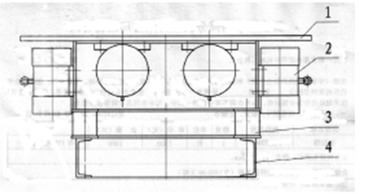 振動平臺(如圖1)由:1、振動平臺臺體 2、振動電機 3、減震彈簧 4、下座架組成。