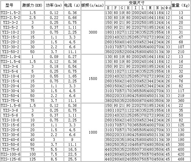注:此外我公司還生產(chǎn)YZS、YZO和YZUL系列振動電機。