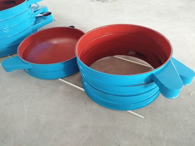 旋振篩中框是旋振篩不可缺少的部分,主要起密封、收集物料及排料的作用,除防粉塵溢散及保護(hù)物料受外界污染,使整個(gè)生產(chǎn)在封閉條件下進(jìn)行外,還可以收集物料并把該層篩網(wǎng)的篩上物從出料口中排出,其材質(zhì)主要有不銹鋼和普通碳鋼。同時(shí)我們針對(duì)難篩物料及篩上物少等特殊情況,設(shè)計(jì)出閘門型中框,是在中框的出料口處增加了拉桿式閘門,在生產(chǎn)過程中可以根據(jù)物料篩分情況進(jìn)行定時(shí)放料,提高透網(wǎng)率,可以根據(jù)客戶需要在上蓋上開觀察孔,保證在生產(chǎn)的過程中隨時(shí)觀察物料運(yùn)行情況;此外我公司還可以根據(jù)用戶需要進(jìn)行特殊設(shè)計(jì)。